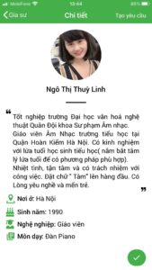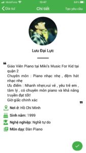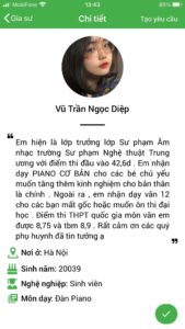 Hướng dẫn xem Profile gia sư dạy piano tại Daykemtainha.vn