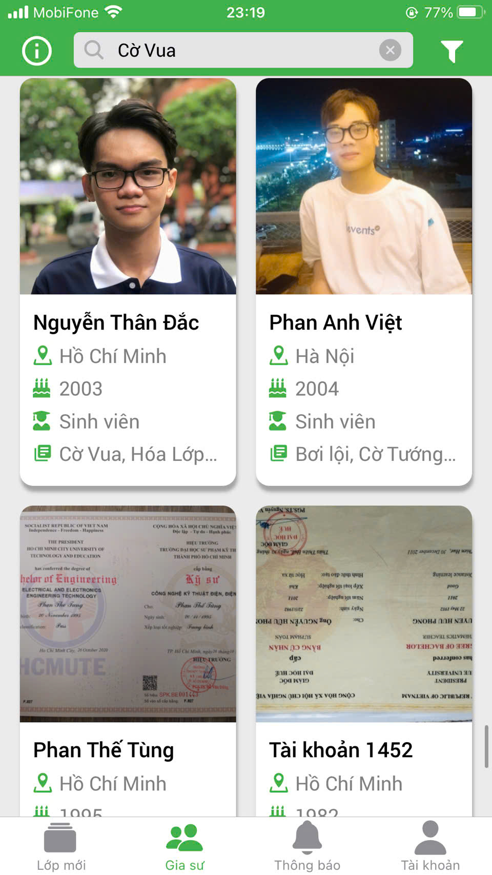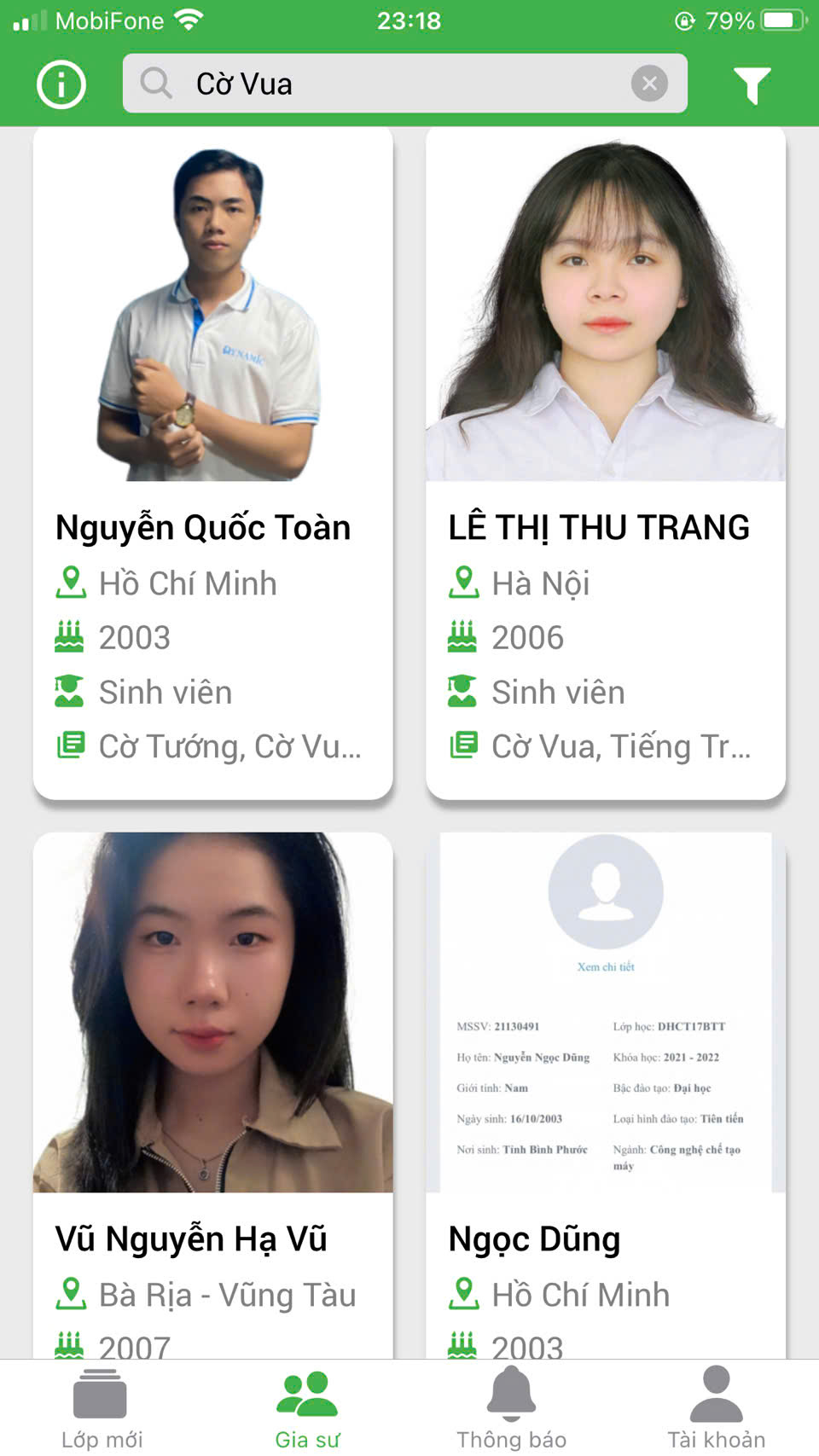 Giáo viên có kinh nghiệm thi đấu và huấn luyện cờ vua, được chọn lọc kỹ, tận tâm.